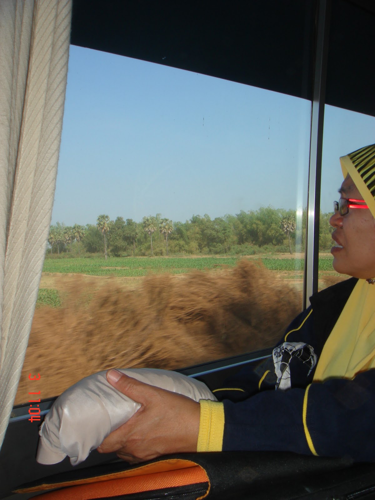 It takes an hour to arrived Cambodia capital city, Phnom Penh from Kuala Lumpur, LCCT by plane. When we arrived we were warmly welcomed by Ustaz Hassan Basri, a President of Cambodian Muslim Society in Cambodia with his 2 great assistants. We were being escorted by a Cambodia government official army and a TV reporter. From Phnom Penh it took 5 hours to arrive Kampung Cha, a small district located on the east of Cambodia. Here we stayed for one night in Mekong Hotel. This hotel located straight from the amazing view of Mekong River, the longest river in Southeast Asia. The sunset, the air, the smell of the red sands makes everything made sense.
